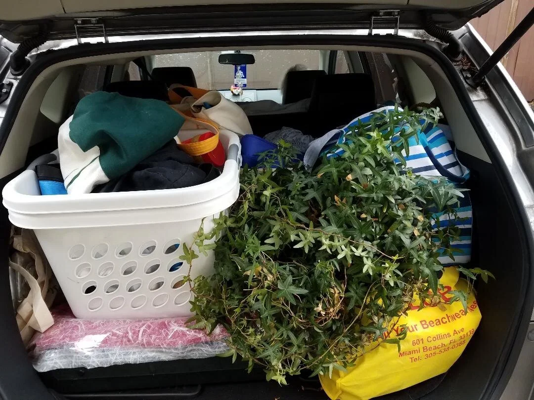 Finally it was time to leave Maryland. Our car was full to the brim! My cat, Tiffany, decided that the backseat wasn’t going to work for her, she yowled continuously. So she made the entire trip in my mom’s lap. Spoiled. We had several plants, a few valuables, all our clothes, some food and dishes, all the cat accessories and food… I packed that car like a jigsaw puzzle, even cramming things in the well with the spare tire.